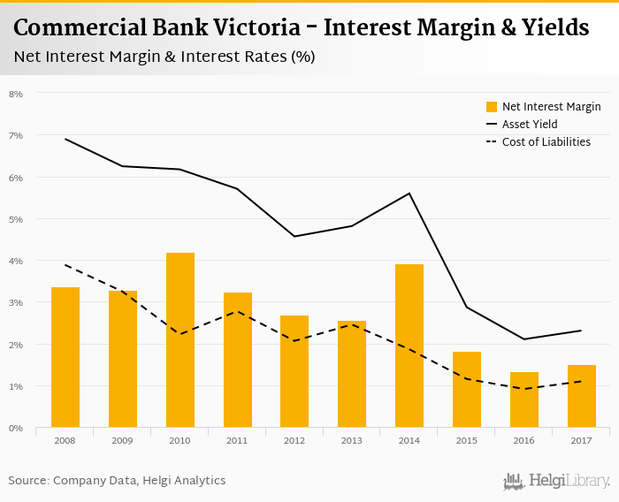 Commercial Bank Victoria's net interest margin amounted to 1.51% in 2017, up from 1.34% compared to the previous year.