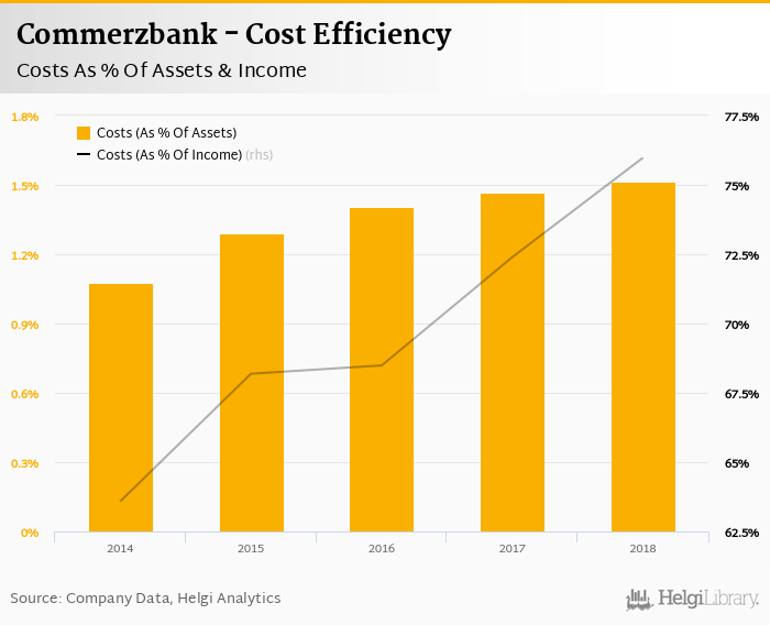 Commerzbank's cost to income ratio reached 76.0% in 2018, up from 72.4% compared to the previous year.