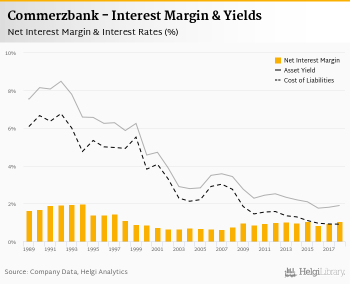 Commerzbank's net interest margin amounted to 1.05% in 2018, up from 0.945% compared to the previous year.