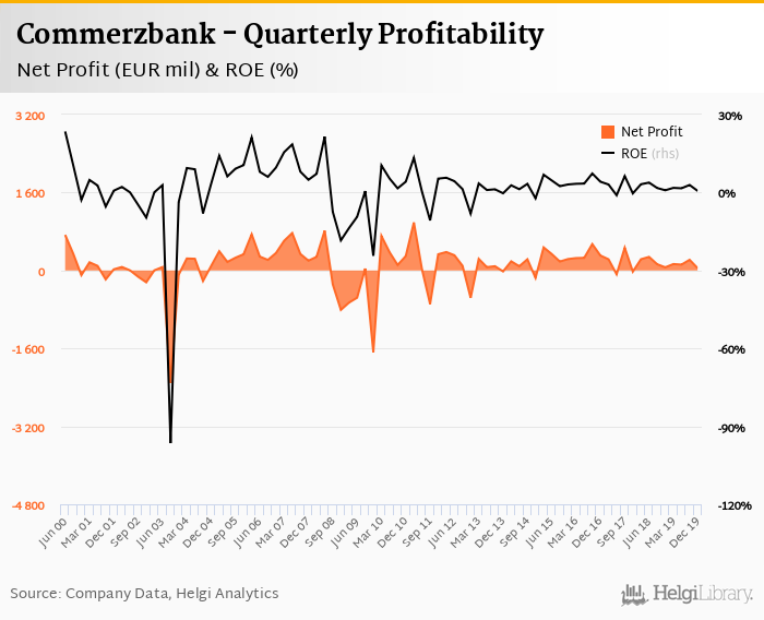 Commerzbank made a net profit of EUR 45.3 mil in the fourth quarter of 2019, down 29.7% when compared to the same period of last year. This implies a return on equity of 0.601%.