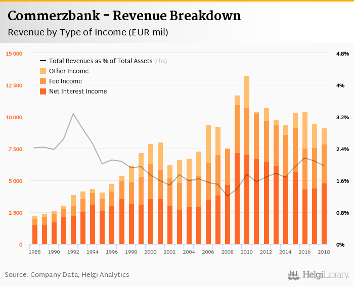 Commerzbank generated total banking revenues of EUR 9,109 mil in 2018, down 3.43% compared to the previous year.