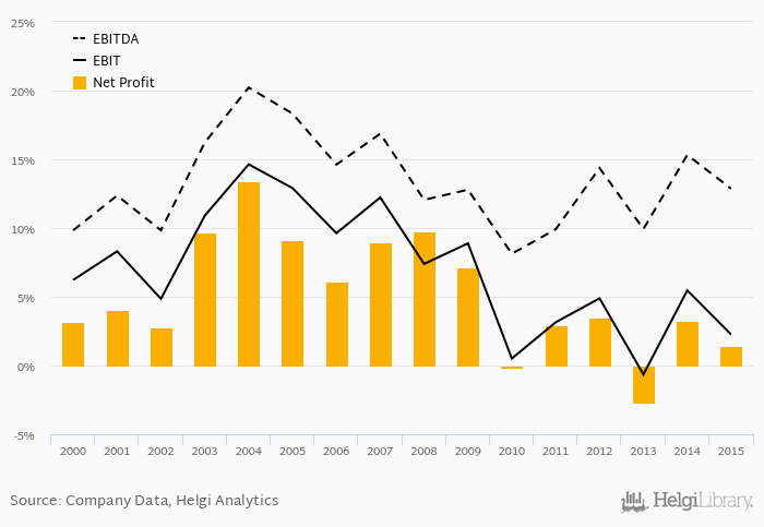On the operating level, the EBITDA margin reached 12.9% and EBIT amounted to 2.26% of sales in 2015.