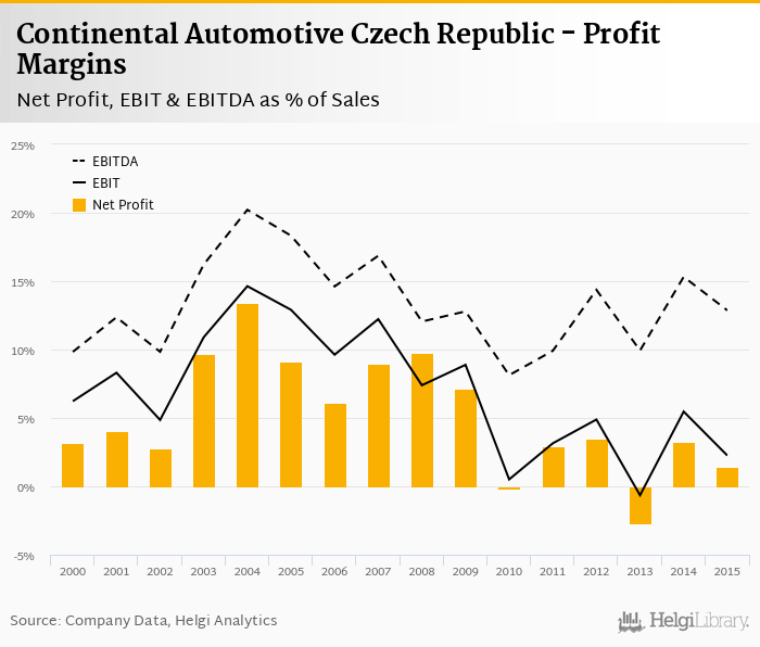 Continental Automotive Czech Republic made a net profit of CZK 772 mil with revenues of CZK 53,927 mil in 2015, down by 54.8% and up by 3.84%, respectively, compared to the previous year.