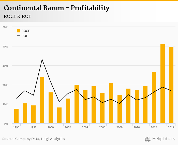 The result implies a return on equity of 16.9% and a return on invested capital of 39.9% in 2014. That is compared to an average of 15.4% and 29.0% over the last five years.