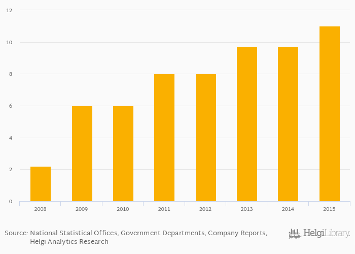 Copper (refined) production rose 13.4% to 11.0 kt in Vietnam in 2015, according to the National Statistical Office.