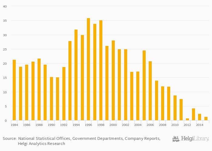Historically, copper (smelter) production in Oman reached an all time high of 35.9 kt in 1996 and an all time low of 0.721 kt in 2012.