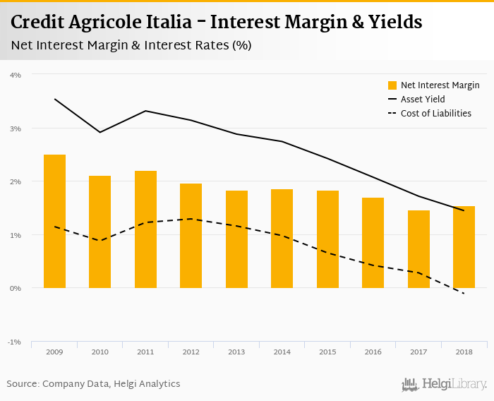 Credit Agricole Italia's net interest margin amounted to 1.54% in 2018, up from 1.46% compared to the previous year.