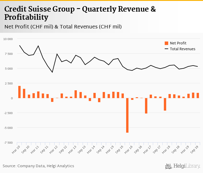 Credit Suisse Group made a net profit of CHF 881 mil under revenues of CHF 5,285 mil in the third quarter of 2019, up 108% and 8.95% respectively when compared to the same period last year.