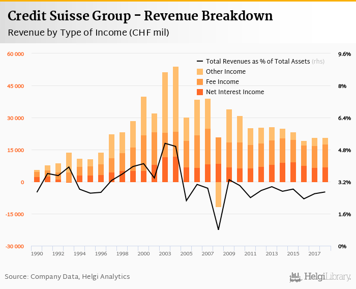 Credit Suisse Group generated total banking revenues of CHF 20,653 mil in 2018, down 0.155% compared to the previous year.