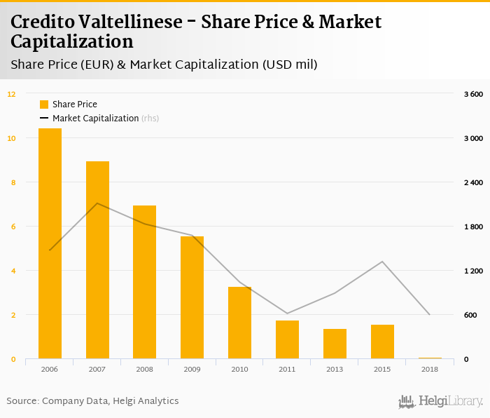 Credito Valtellinese stock traded at EUR 0.074 per share at the end of 2018 implying a market capitalization of USD 590 mil.