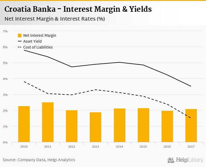 Croatia Banka's net interest margin amounted to 2.09% in 2017, up from 1.99% compared to the previous year.