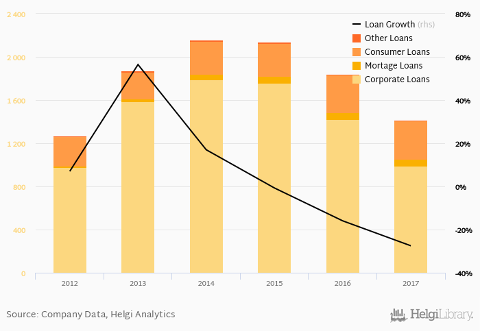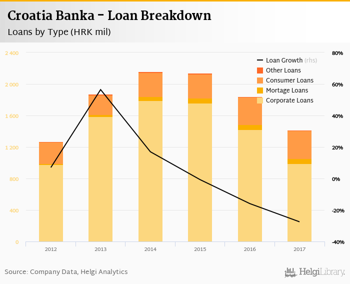 Mortgage loans represented 4.50% of the bank's loan book at the end of the year 2017, consumer further 24.7% and corporate loans 70.3% of total loans.