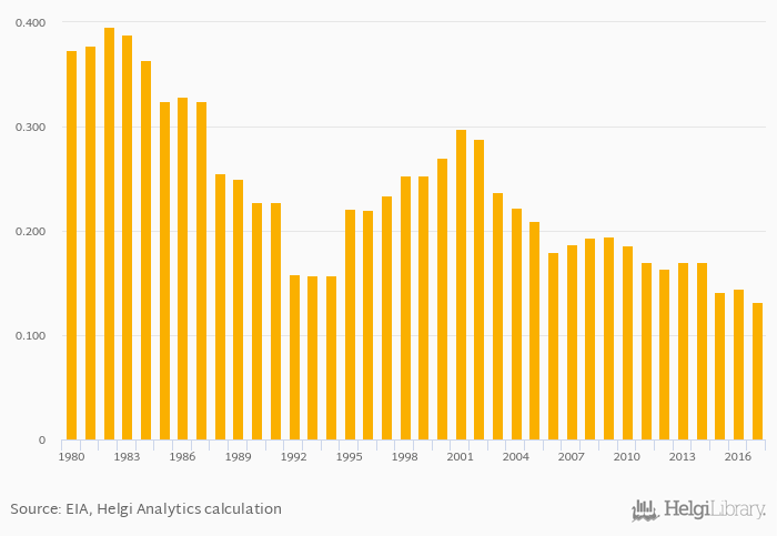 Crude oil reserves as a share of worldwide reserves fell 8.20% to 0.132% in Argentina in 2017, according to EIA.