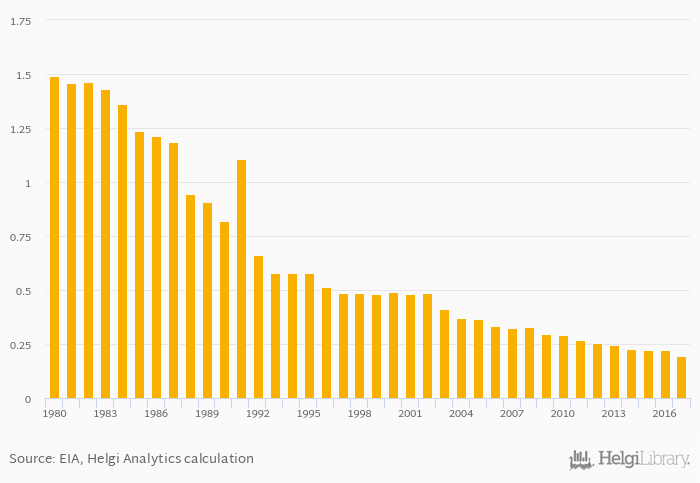 Crude oil reserves as a share of worldwide reserves fell 12.5% to 0.196% in Indonesia in 2017, according to EIA.