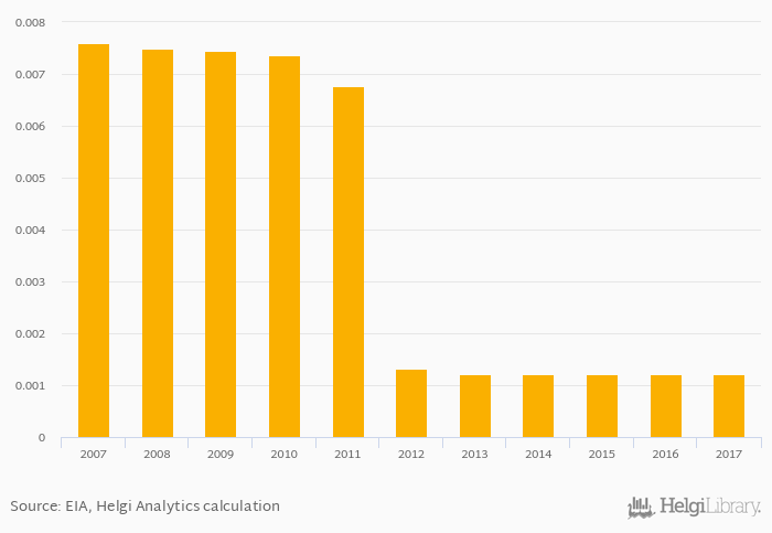 Crude oil reserves as a share of worldwide reserves rose 0% to 0.001% in Mauritania in 2017, according to EIA.