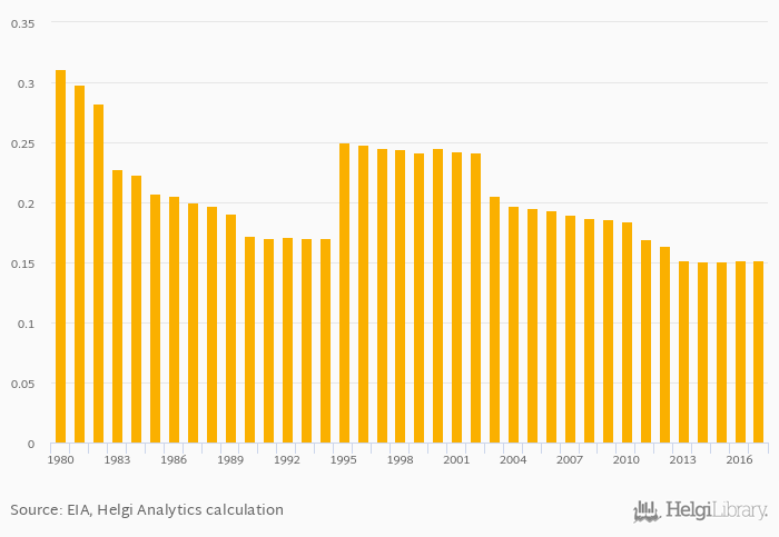 Crude oil reserves as a share of worldwide reserves rose 0% to 0.151% in Syria in 2017, according to EIA.