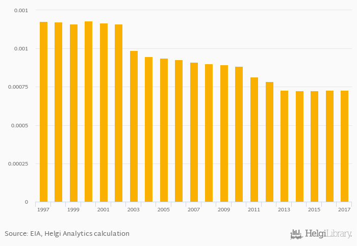 Crude oil reserves as a share of worldwide reserves rose 0% to < 0.001% in Tajikistan in 2017, according to EIA.