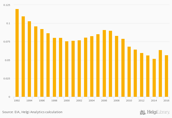 Crude oil supply as a share of worldwide supply fell 11.0% to 0.057% in Ukraine in 2016, according to EIA.