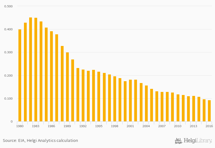 Crude oil supply as a share of worldwide supply fell 4.06% to 0.094% in Romania in 2016, according to EIA.