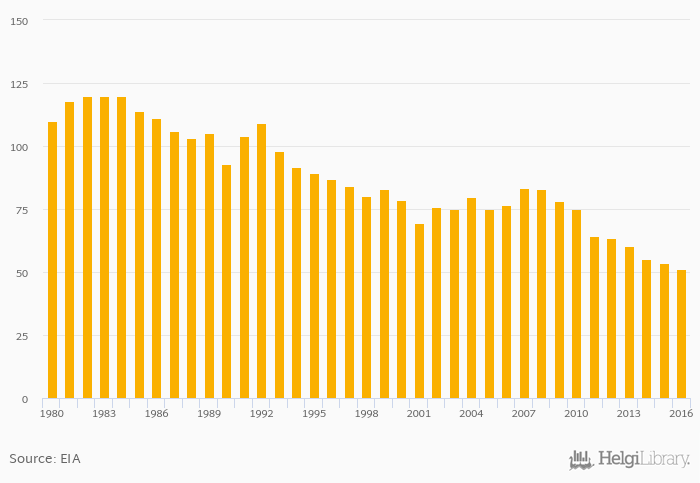 Crude oil supply fell 4.66% to 51.1 '000 bpd in Tunisia in 2016, according to EIA.