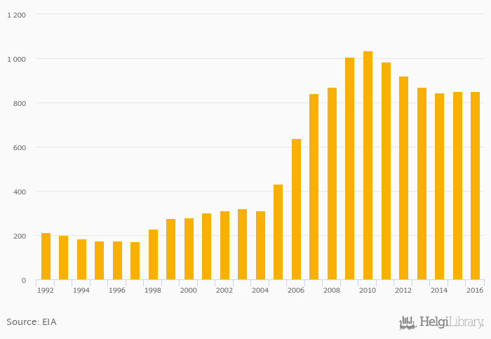 Crude oil supply rose 0.194% to 852 '000 bpd in Azerbaijan in 2016, according to EIA.