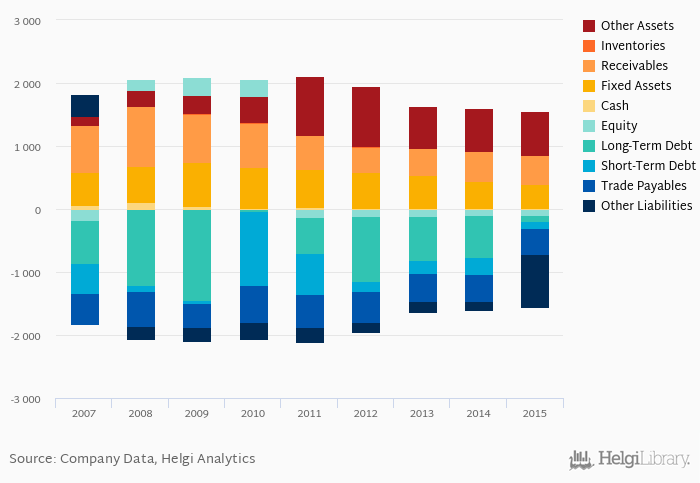 Net debt against equity is up 6.53 pp from five years ago (-4.49). The ratio against EBITDA increased from -5.84x seen in 2010 to 1.76x.