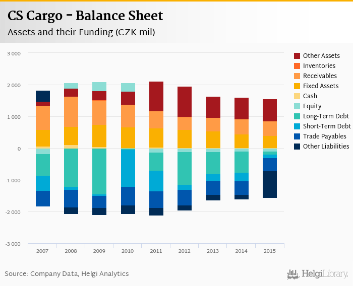 CS Cargo's total assets reached CZK 1,559 mil at the end of 2015, down 3.22% compared to the previous year.