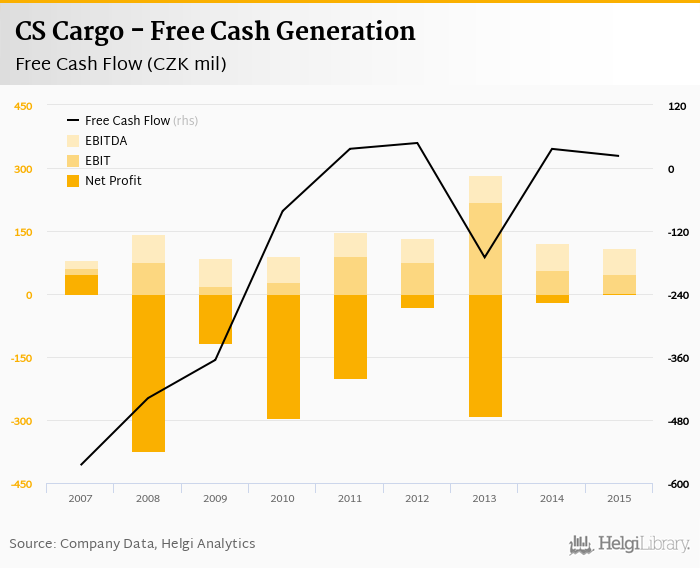CS Cargo made a net profit of CZK 1.41 mil with revenues of CZK 2,757 mil in 2015, up by 108% and up by 3.1%, respectively, compared to the previous year. This translates into a net margin of 0.051%.
