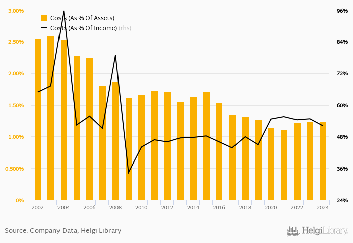 When compared to total assets, bank's cost amounted to 1.24% in 2024, up from 1.23% a year earlier.