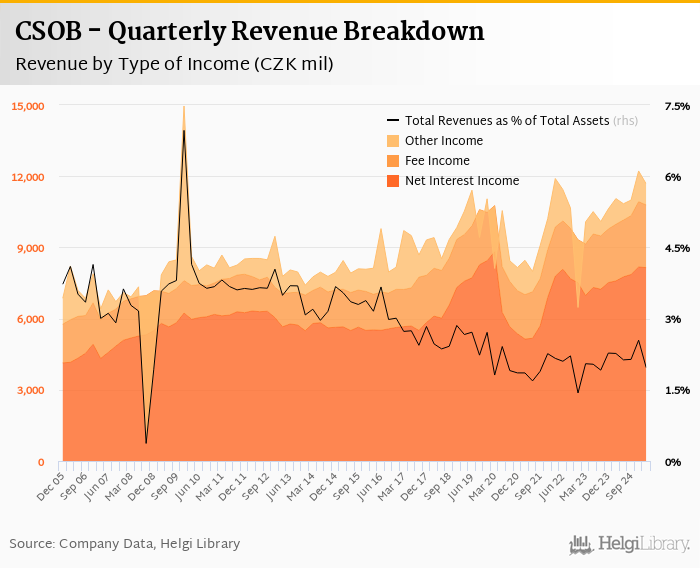 When compared to bank's main peers, Komercni Banka generated total revenues of 2.30% of assets in 1Q2025.