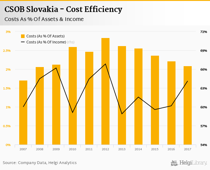 CSOB Slovakia's cost to income ratio reached 64.1% in 2017, up from 60.2% compared to the previous year.