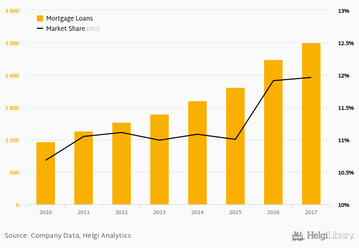 CSOB Slovakia accounted for 12.0% of all mortgage loans issued in Slovakia at the end of 2017. Historically, the bank’s market share in mortgage loans reached an all time high of 12.0% in 2017 and an all time low of 10.7% in 2010.