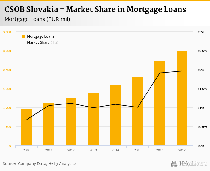 CSOB Slovakia's mortgage loans reached EUR 3,004 mil in 2017, up 12.0% compared to the previous year.