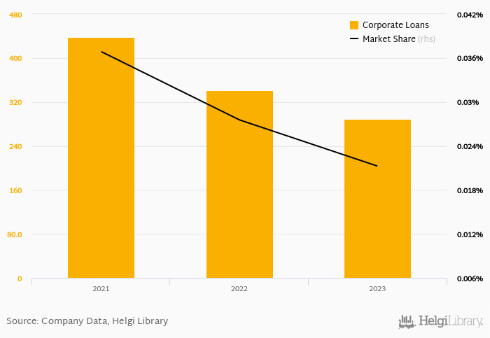 CSOB Stavebni Sporitelna accounted for 0.021% of all corporate loans issued in Czechia at the end of 2023. Historically, the bank’s market share in corporate loans reached an all time high of 0.037% in 2021 and an all time low of 0.021% in 2023.