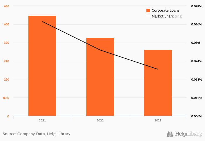 CSOB Stavebni Sporitelna accounted for 0.021% of all corporate loans issued in Czechia at the end of 2023. Historically, the bank’s market share in corporate loans reached an all time high of 0.037% in 2021 and an all time low of 0.021% in 2023.
