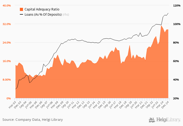 Bank's loan to deposit ratio reached 112% at the end of 4Q2024, up from 98.7% when compared to the same period of last year. Some 10 years ago, loan to deposit ratio of the bank amounted to 79.2%.