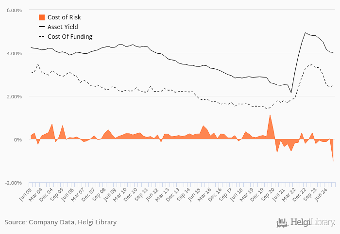 Historically, the bank’s cost of risk reached an all time high of 1.13% in 2Q2020 and an all time low of -1.04% in 4Q2024. The average cost of risk in the last six quarters amounted to -0.258%.