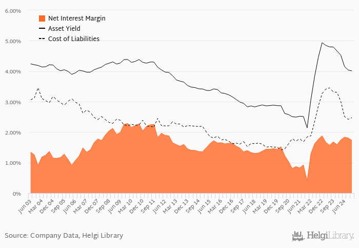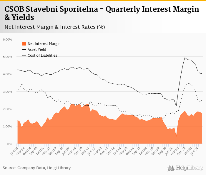 CSOB Stavebni Sporitelna's net interest margin amounted to 1.73% in the fourth quarter of 2024, down from 1.81% when compared to the previous quarter.