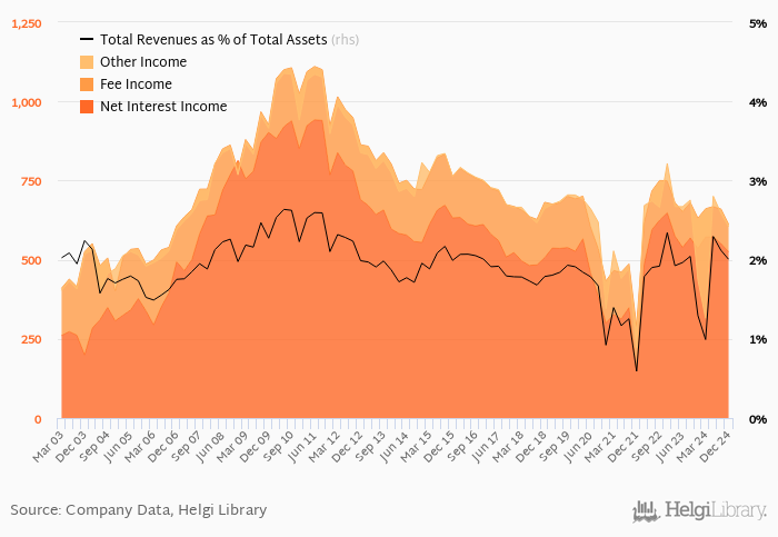 Bank's total revenues accounted for 2.00% total assets in the fourth quarter of 2024, up from 1.29% a year earlier.