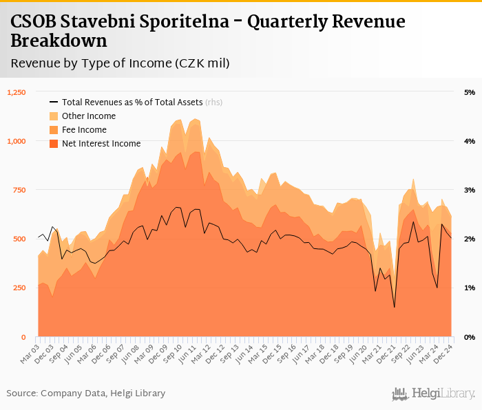 CSOB Stavebni Sporitelna generated total banking revenues of CZK 604 mil in the fourth quarter of 2024, up 38.5% when compared to the same period of last year and down 6.58% when compared to the previous quarter.