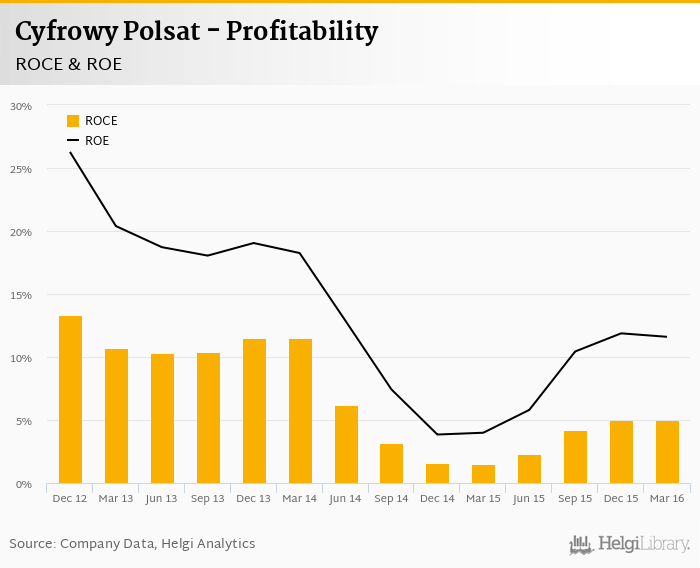 Cyfrowy Polsat made a net profit of PLN 176 mil in 1Q2016, up 2.75% compared to the previous year. Historically, between 1Q2012 and 1Q2016, the company's net profit reached a high of PLN 503 mil in 3Q2015 and a low of PLN 14.0 mil in 4Q2014.