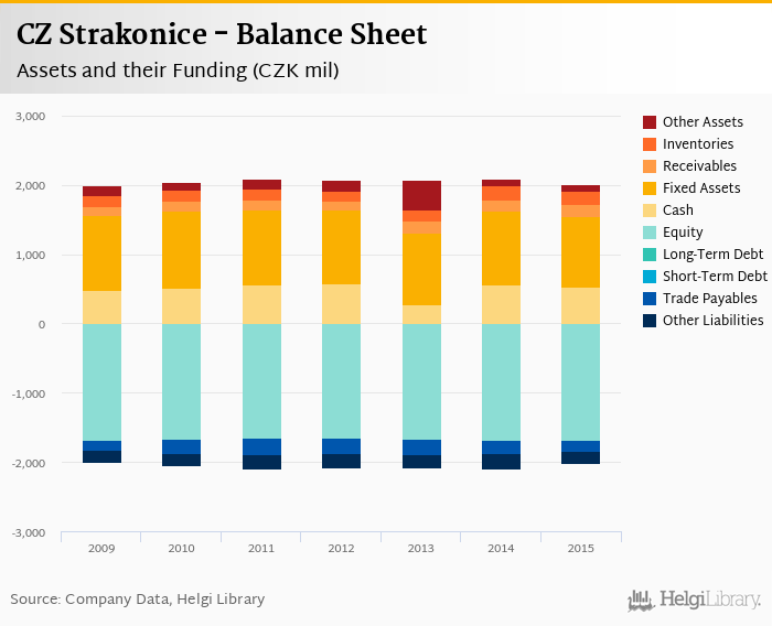 CZ Strakonice's total assets reached CZK 2,013 mil at the end of 2015, down 3.96% compared to the previous year.