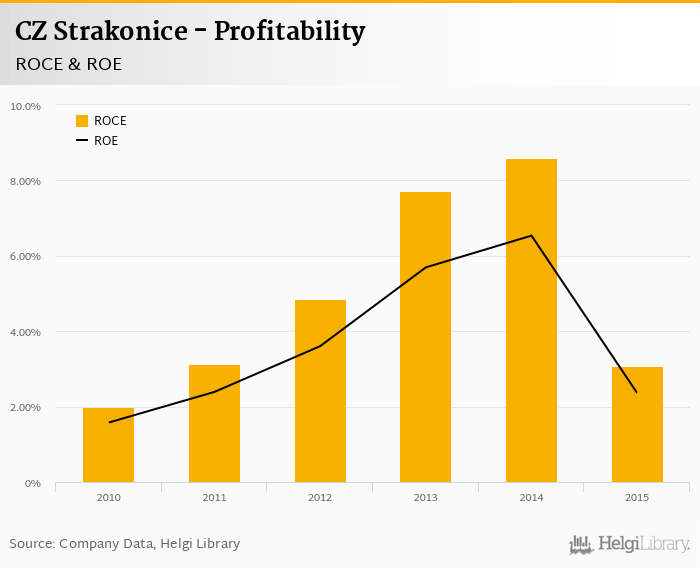 As far as CZ Strakonice's peers are concerned, Varroc Lighting Systems Czech Republic generated ROE of 28.0% and ROCE of 17.8% in 2015. Marelli Automotive Lighting Czech Republic's profitability reached 46.9% and 47.7%, respectively. Continental Automotive Czech Republic operated with 7.08% and 2.02% returns in 2015.