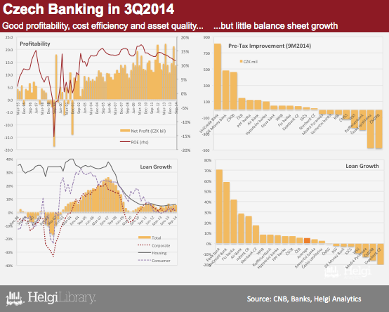 Czech banks had another solid quarter in 3Q14, on our calculations. Although details of the sector's profitability are to be announced only next week, the sum of individual banks' performances suggest following: