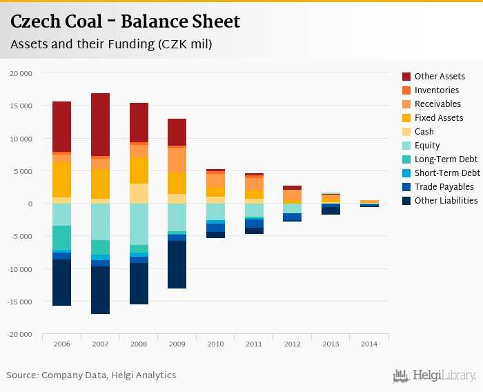 Czech Coal's total assets reached CZK 561 mil at the end of 2014, down 62.6% compared to the previous year.