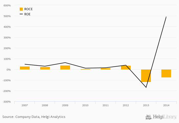 The result implies a return on equity of 494% and a return on invested capital of -73.0% in 2014. That is compared to an average of 77.4% and -27.6% over the last five years.