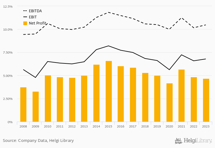 On the operating level, the EBITDA margin reached 10.5% and EBIT amounted to 6.79% of sales in 2023.
