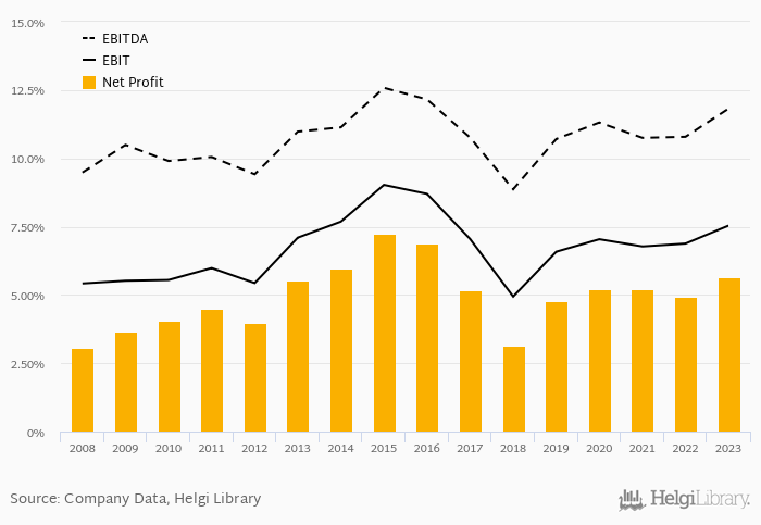 On the operating level, the EBITDA margin reached 11.8% and EBIT amounted to 7.54% of sales in 2023.