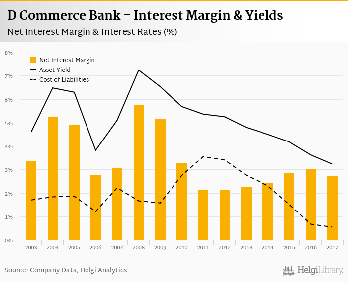D Commerce Bank's net interest margin amounted to 2.76% in 2017, down from 3.04% compared to the previous year.
