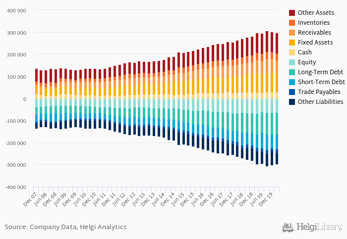 By contrast, total debt reached EUR 167,429 mil at the year-end, or 56.2% of total assets, while the firm's equity amounted to EUR 63,163 mil. As a result, net debt stood at EUR -11,562 mil at the end of 1Q2020 and accounted for -18.3% of equity.